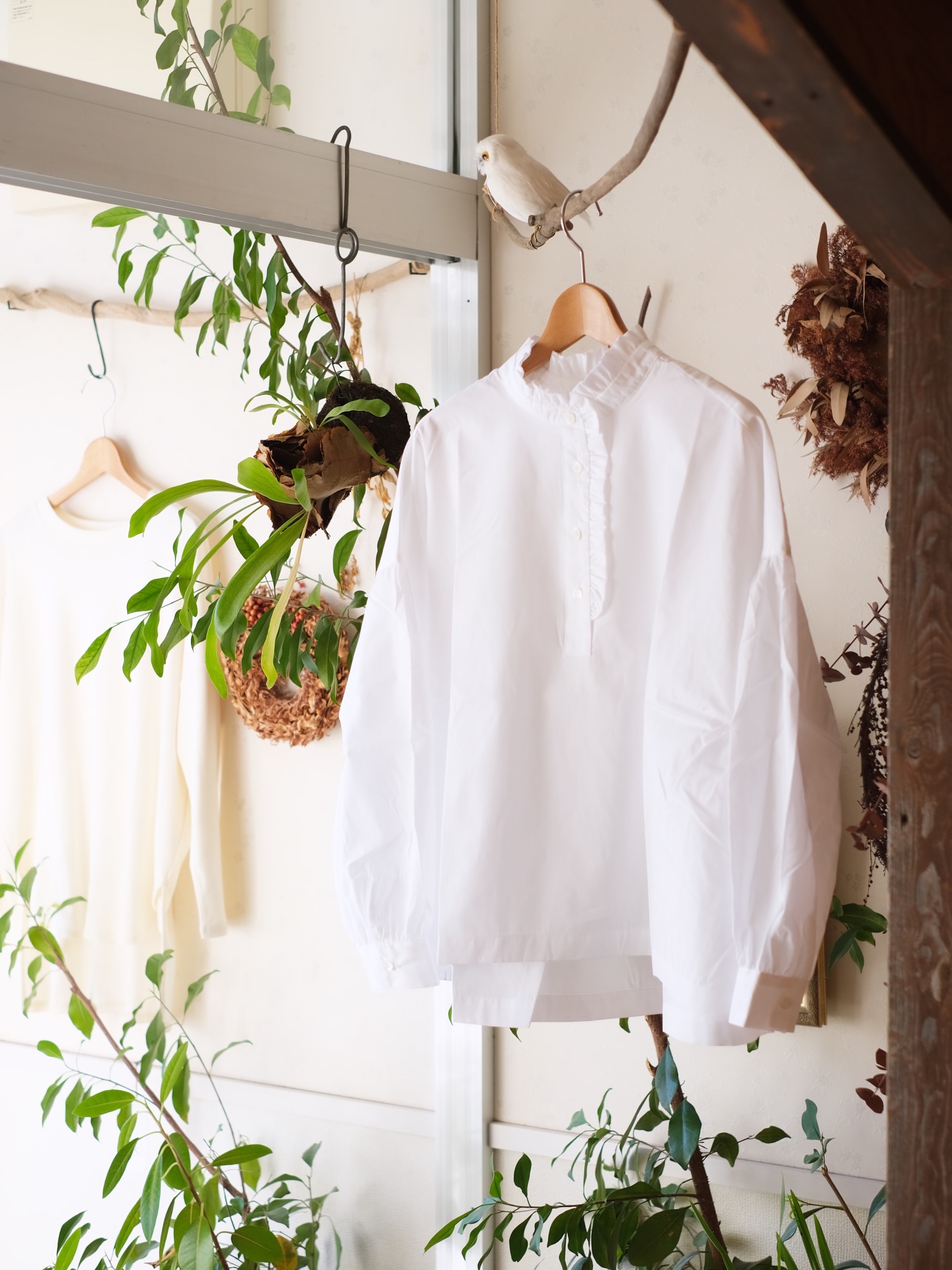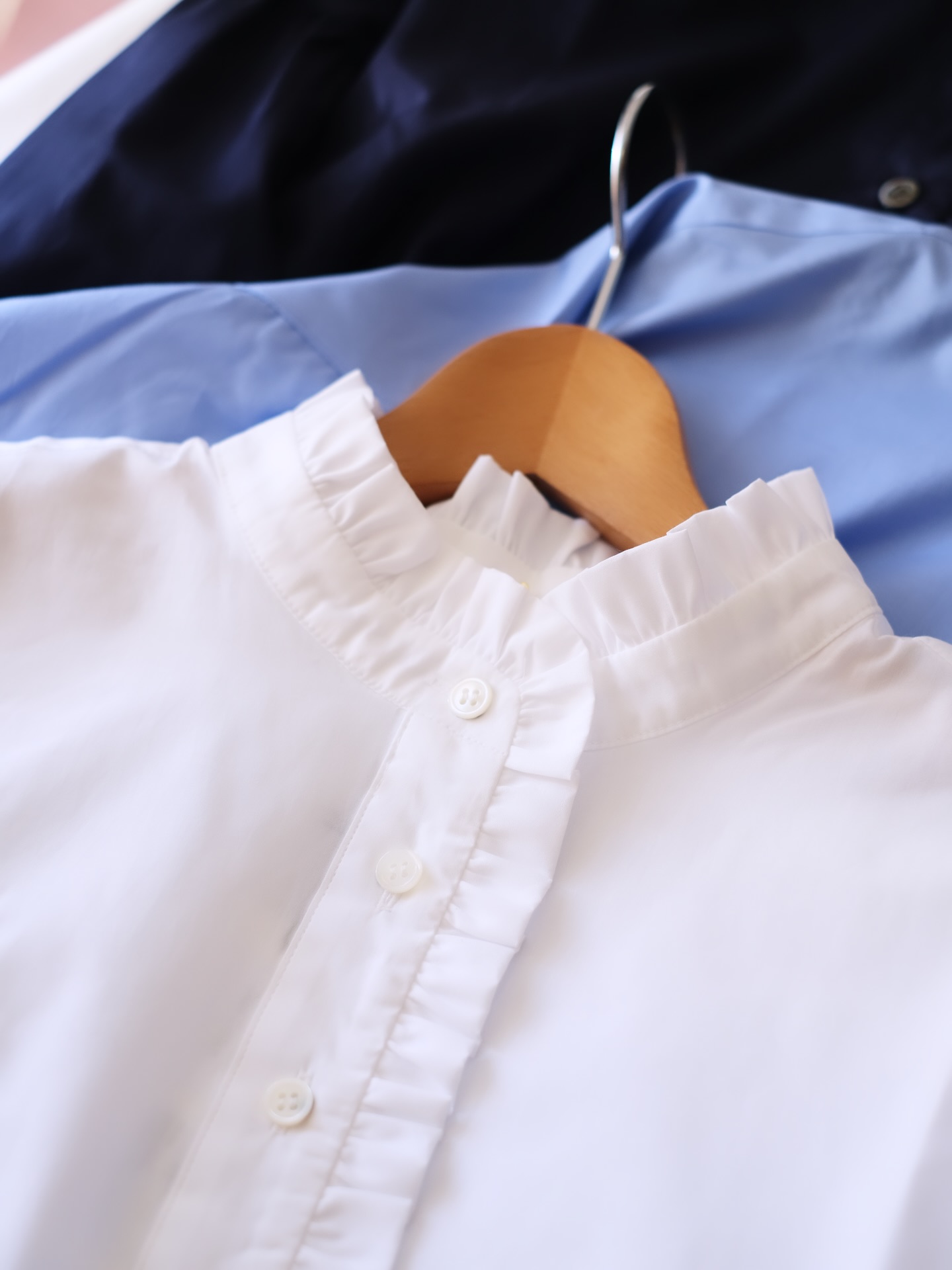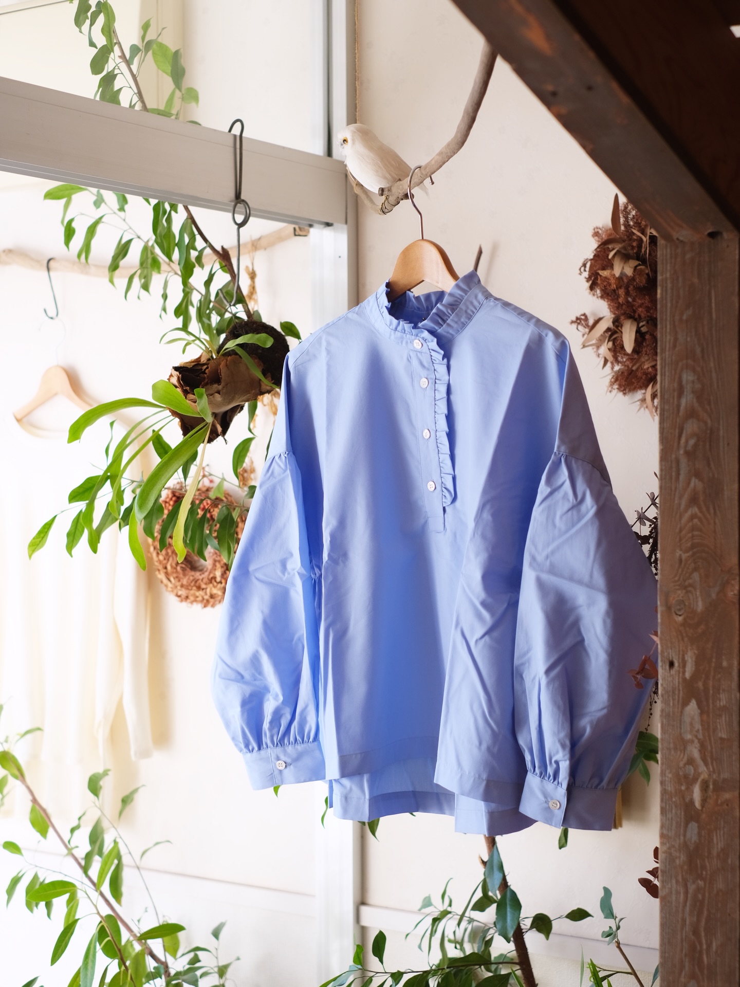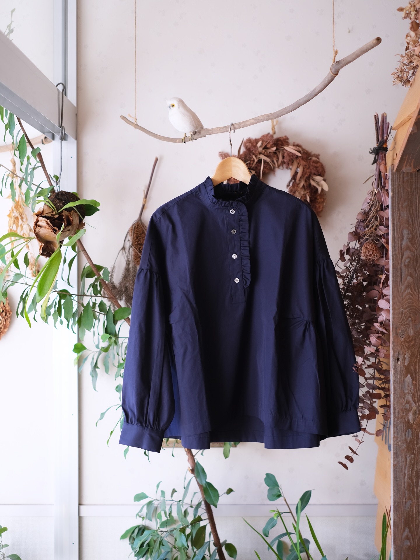 定番スタンドカラーブラウスの形に、