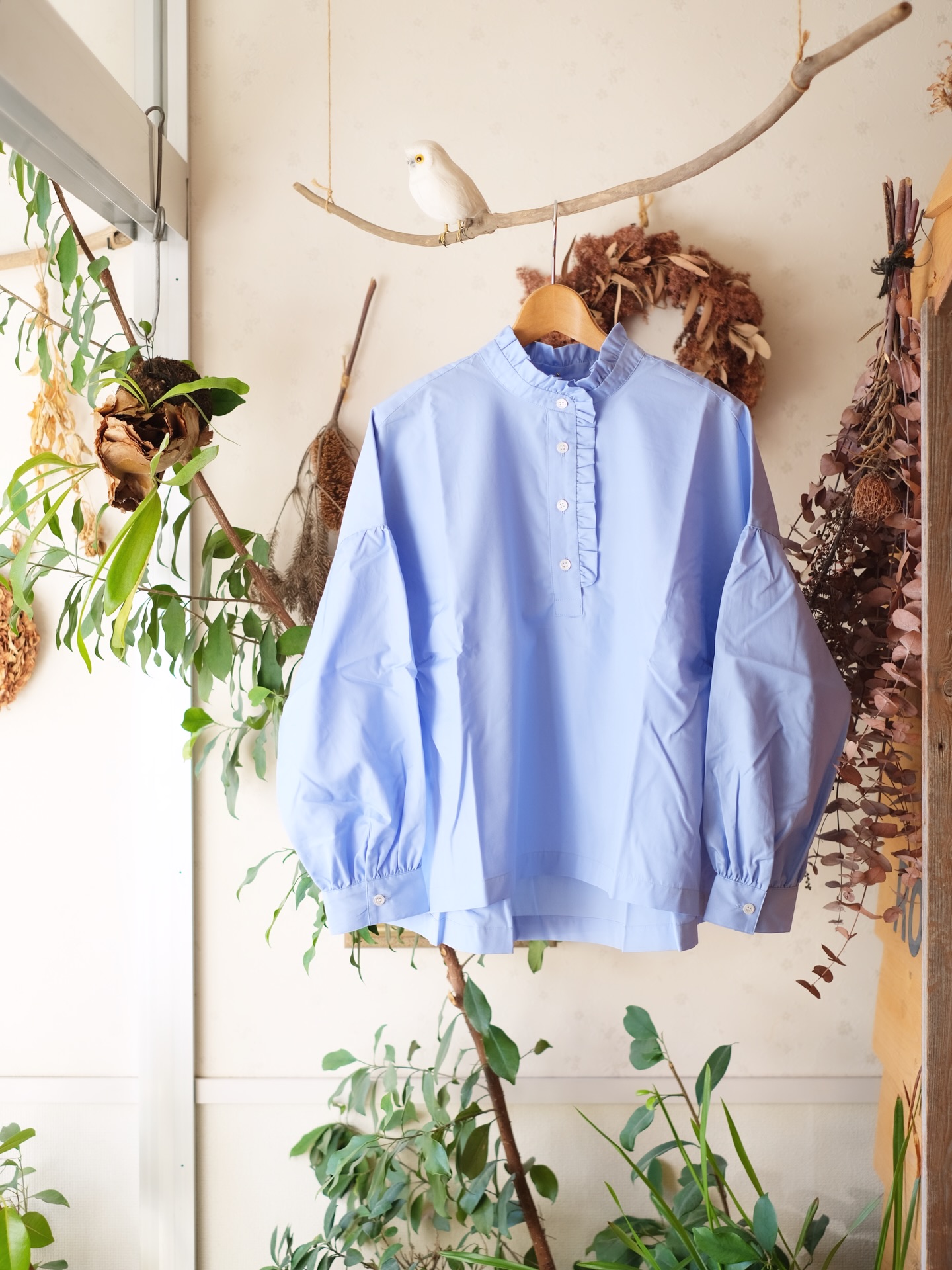 フリル長袖ブラウス
